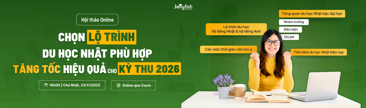 Trong bài viết dưới đây, Jellyfish sẽ cập nhật những thông tin MỚI NHẤT về du học Nhật Bản tự túc, học bổng, gồm: Điều kiện, Chi phí, Học bổng và thông tin tuyển sinh 2025 – 2026. CẨM NANG DU HỌC NHẬT BẢN 2025 – 2026 1. ĐIỀU KIỆ...